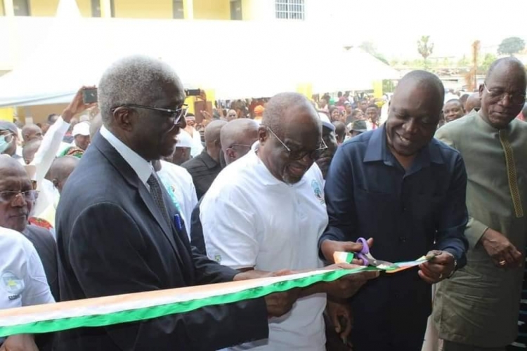Le ministre du Transport à la cérémonie d'inauguration du marché d'Ahougnanssou en 2023